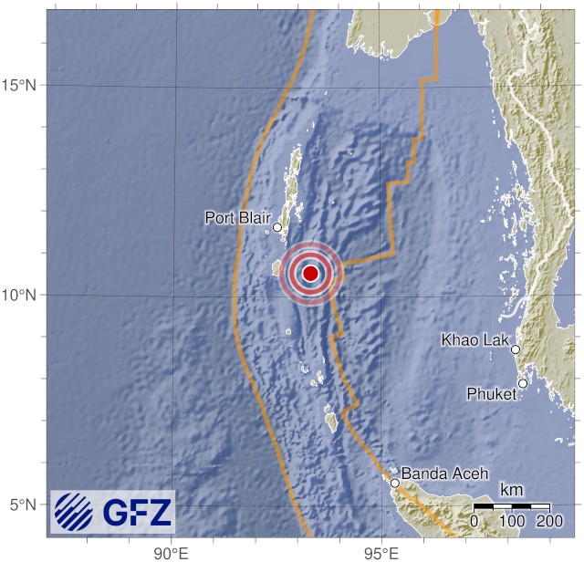 • 05:13 แผ่นดินไหวขนาด 4.7 (mb) ลึก 10 กม.พิกัด 93.31°E 10.57°N หมู่เกาะอันดามัน มหาสมุทรอินเดีย